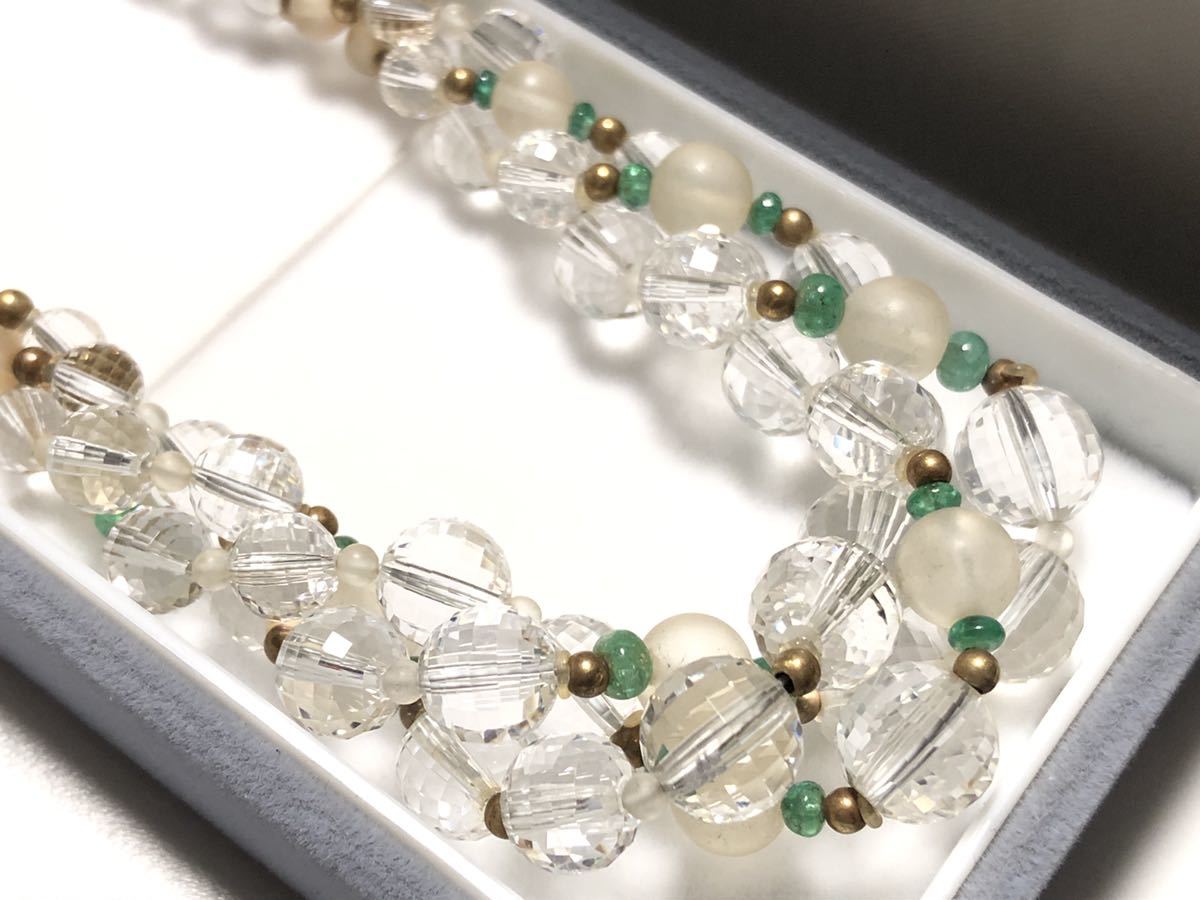 - 本水晶 エメラルド SILVER 42.5g ミラーボールカット デザイン 3連ツイストネックレス☆