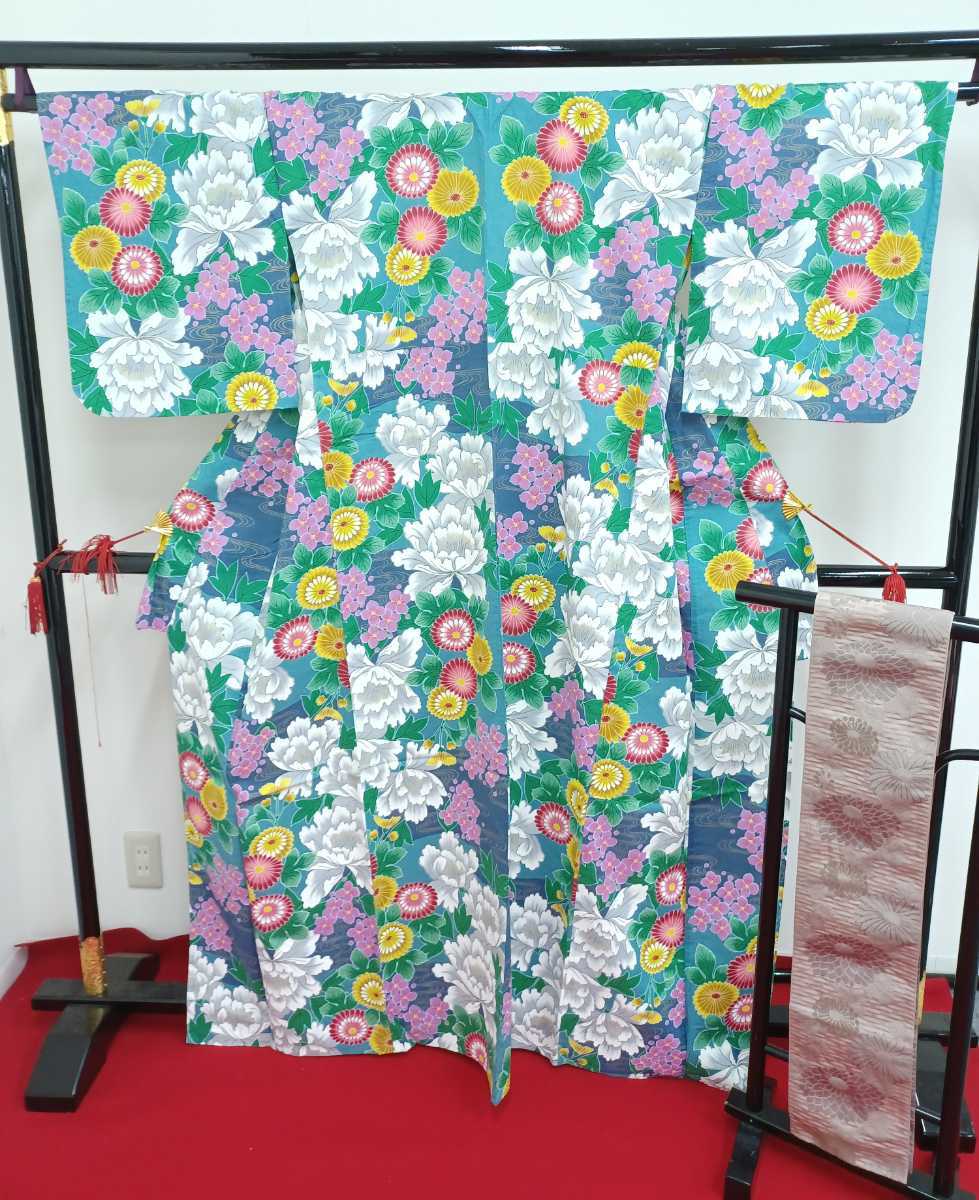 - 岩-浴衣④)【帯付き】浴衣 帯 中古品 裄丈65cm 着丈160cm 浴衣 着物 夏 盆踊り 納涼大会 花火 式典 祭り 220609
