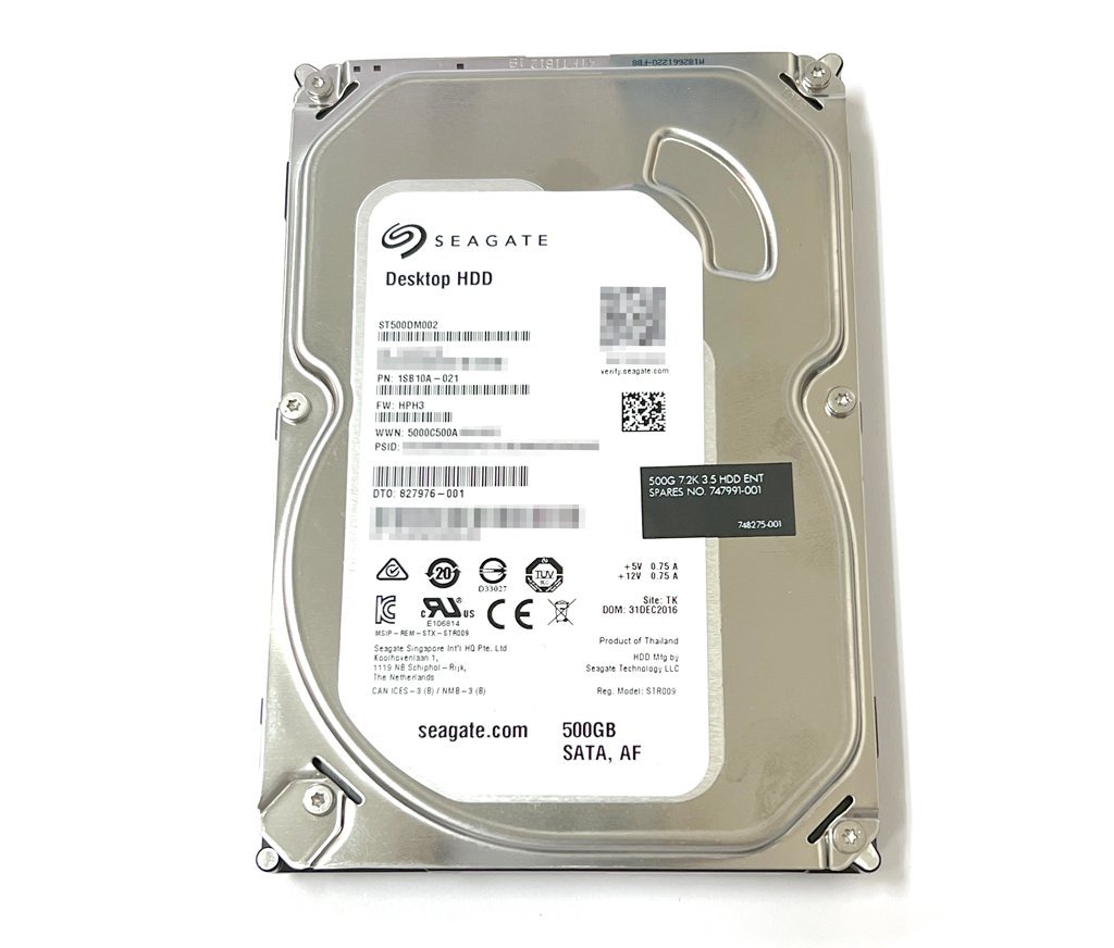 中古のハードディスクです。容量は500GB、インターフェースはSATA3です。