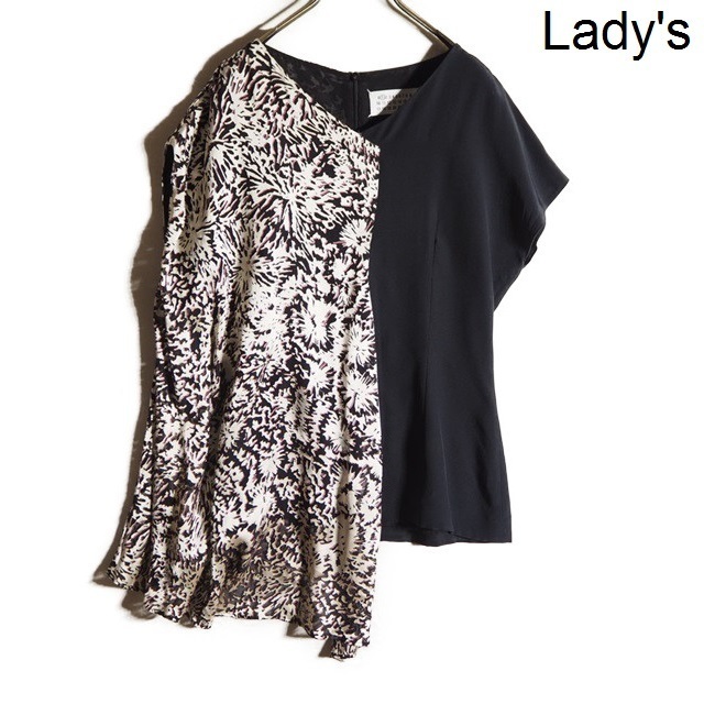 > x4123P ▼MAISON MARGIELA メゾンマルジェラ 1▼ アシンメトリー切り替え レーヨン シルク ブラウス 黒 マルタンマルジェラ 春夏 rb mks