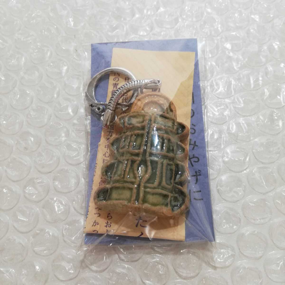 - 滋賀 野州 銅鐸 陶器製 キーホルダー 4.6cm 未使用 [障害者制作 観光土産 銅鐸博物館 バッグチャーム キーリング 根付]