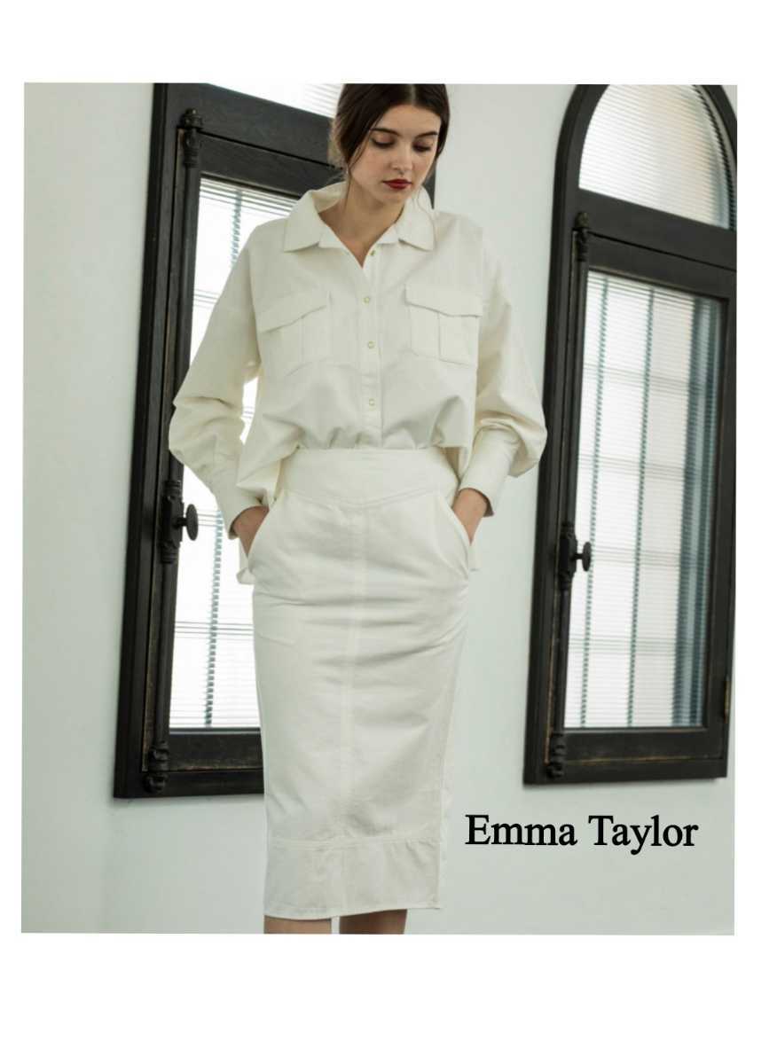 - 未使用【エマテイラー】Emma Taylor ホワイトデニムスカート(38)定価9,000+tax タグ付き 膝丈 タイト