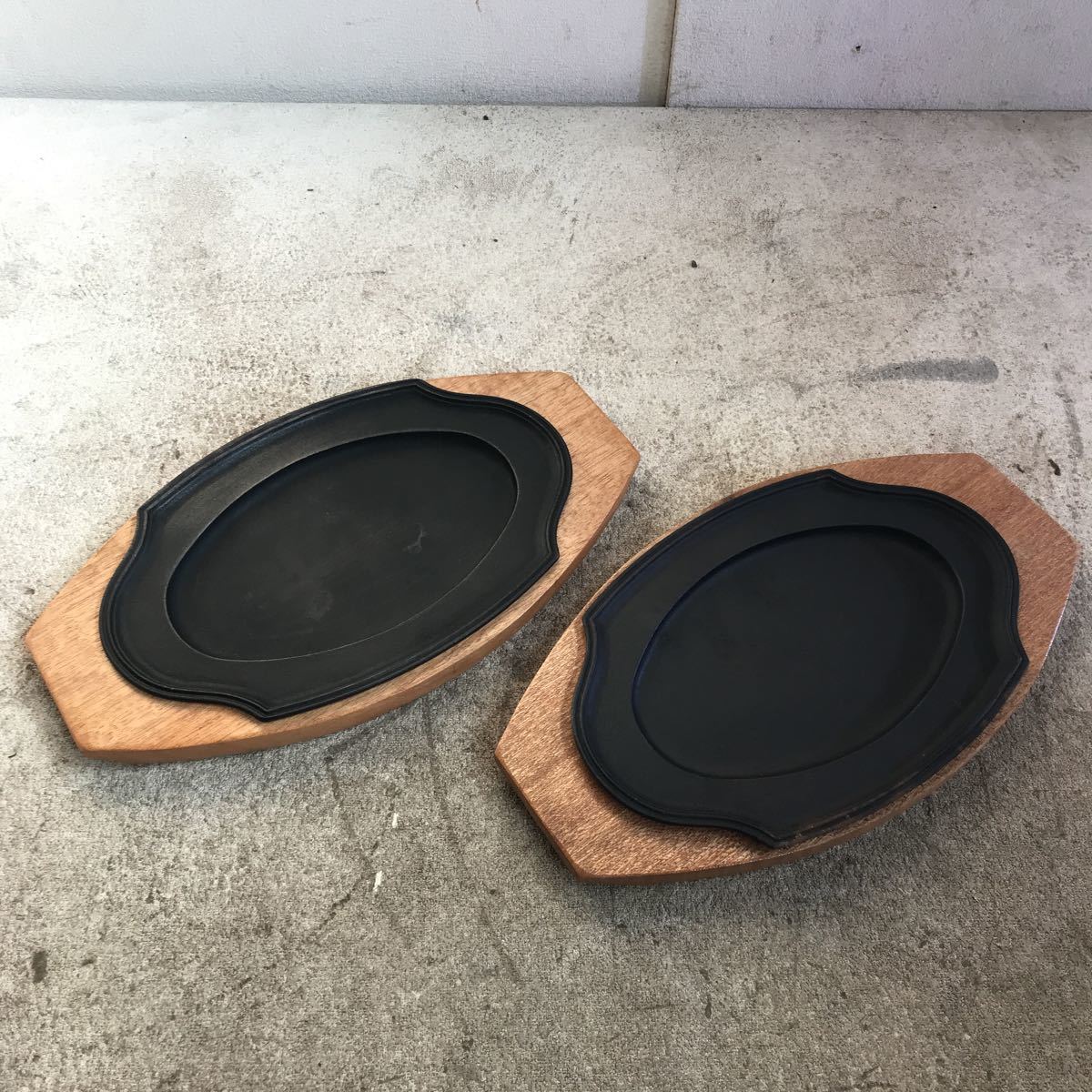 - ステーキ皿 鉄板プレート 木台付き 2セット