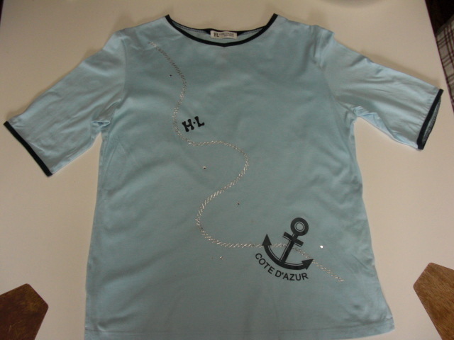 > H・L アシュエルCOTE D'AZUR スポーツウェア半袖Tシャツ ラインストーン使用 薄いブルー 38
