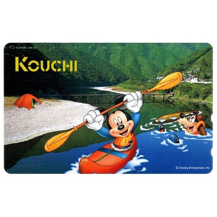> テレホンカード ディズニー 観光地シリーズ No.32 高知 四万十川 ミッキーマウス Mickey Mouse 未使用 グーフィー