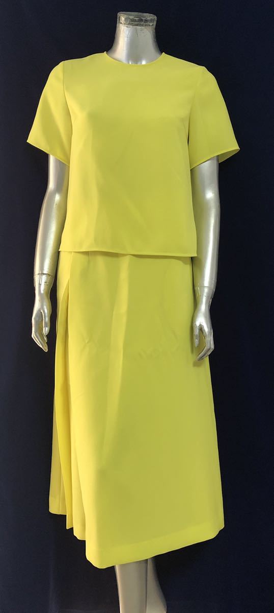 > 二点落札で送料無料! 2A40 LE CIEL BLEU ルシェルブルー レディース 上下セットアップ イエロー スカートスーツ 上36下38 黄色