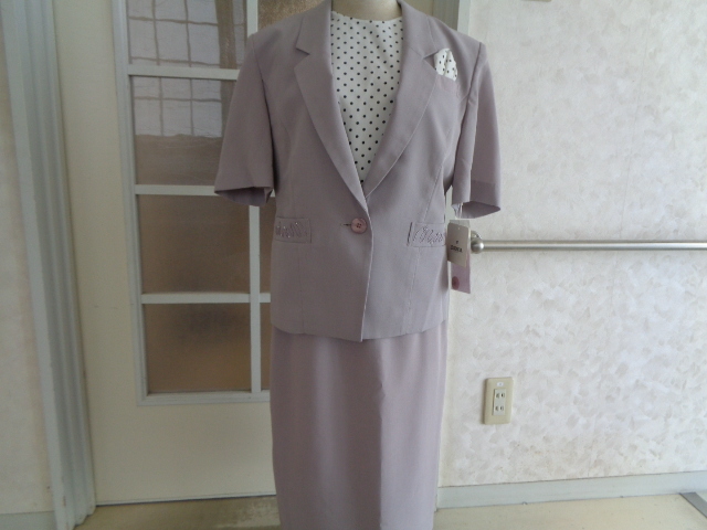 - b152-80 昭和レトロ 半袖スーツ ポケットチーフ付き 胸当て脱着式 11BR ポリ100% 日本製 タグ付き 80年代 ヴィンテージ 未使用 長期保管品
