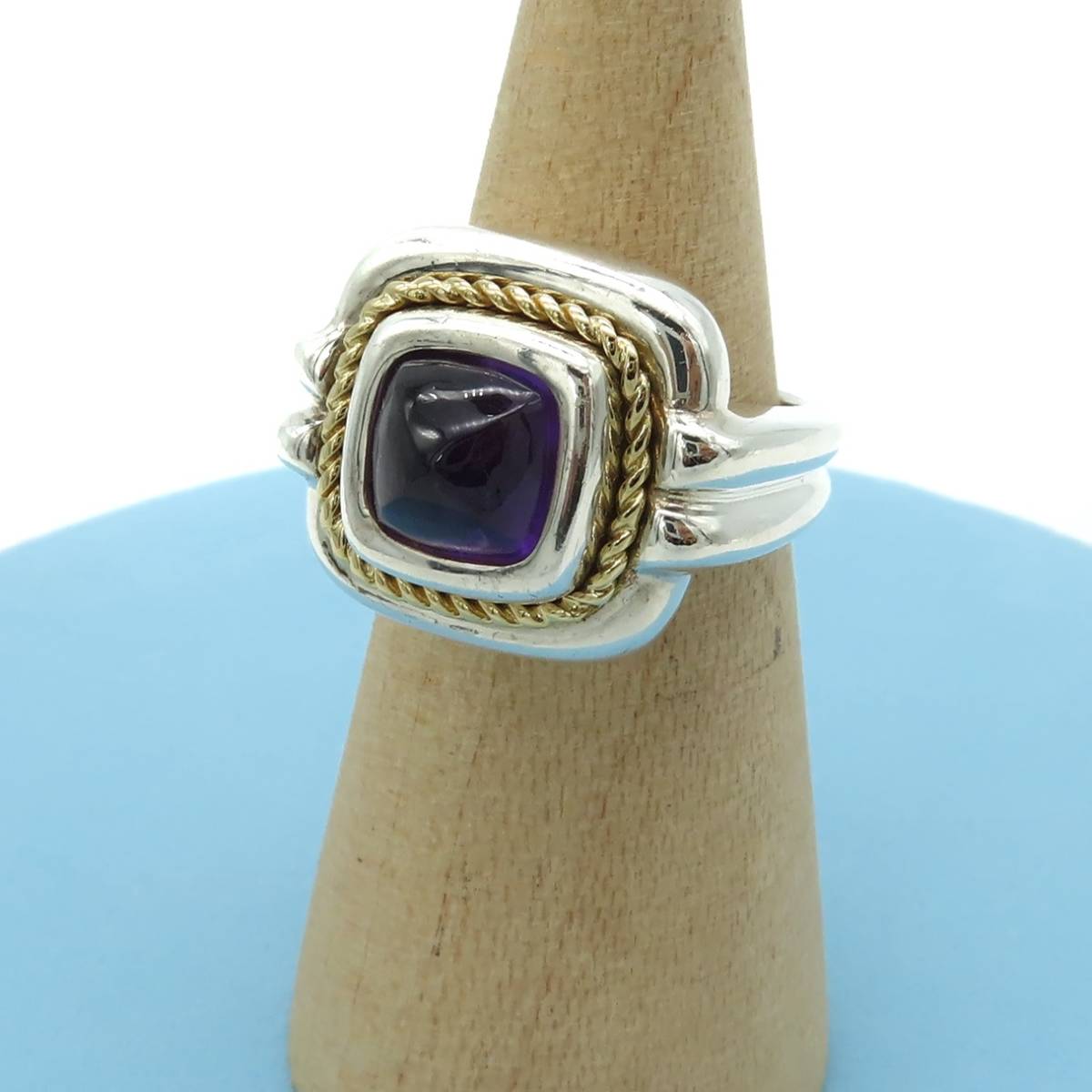 > 極希少 美品 Tiffany&Co. ティファニー ピラミッド 大粒 アメジスト ゴールド シルバー コンビ リング 10号 指輪 750 K18 SV925 OO25