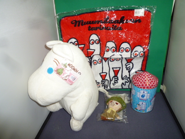 - b非売品★未使用★2007年一番くじチャレンジ ムーミンハウス ミニタオル(缶ケース付き)とぬいぐるみ他4点