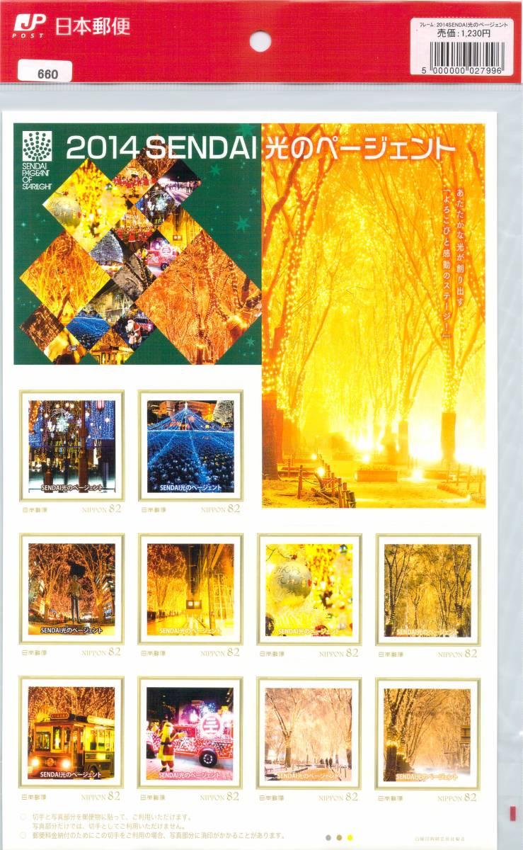 - 660★フレーム切手 2014SENDAI光のページェント 82円x10★