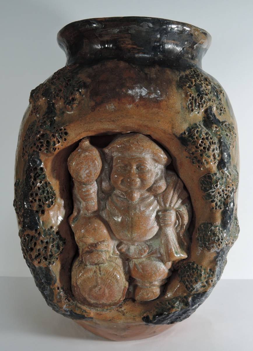 > ☆0001 時代物-1■古い焼き物 古い壷/古い壺 信楽焼? 備前焼? 大黒様 高さ:25cm■花器/花瓶