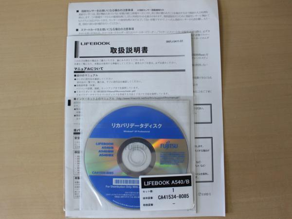 - 新品 富士通 LIFEBOOK A540/B■リカバリディスクXPのみ【取扱説明書付】「富士通 05 ②」