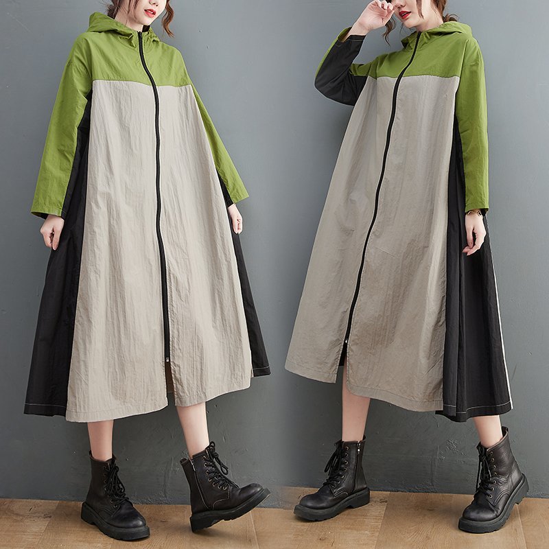 - HSM333★春新入荷 *新作**レディース*カジュアル*ゆったり大きいサイズ*体型カバー*配色フード付きトレンチコートスプリングコート
