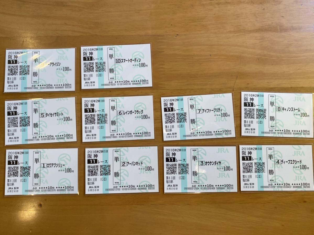 - 【R】競馬 単勝馬券 第63回毎日杯 出走馬全10頭セット スマートオーディン他 現地購入