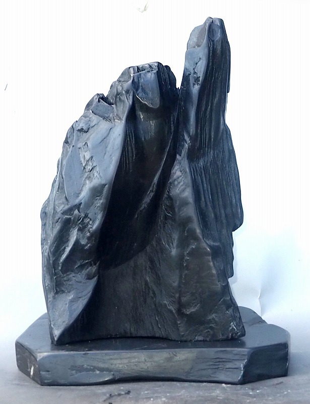 - 那智黒水石 原石 神上石 神渓石 試金石 高さ34cm 展示 置物