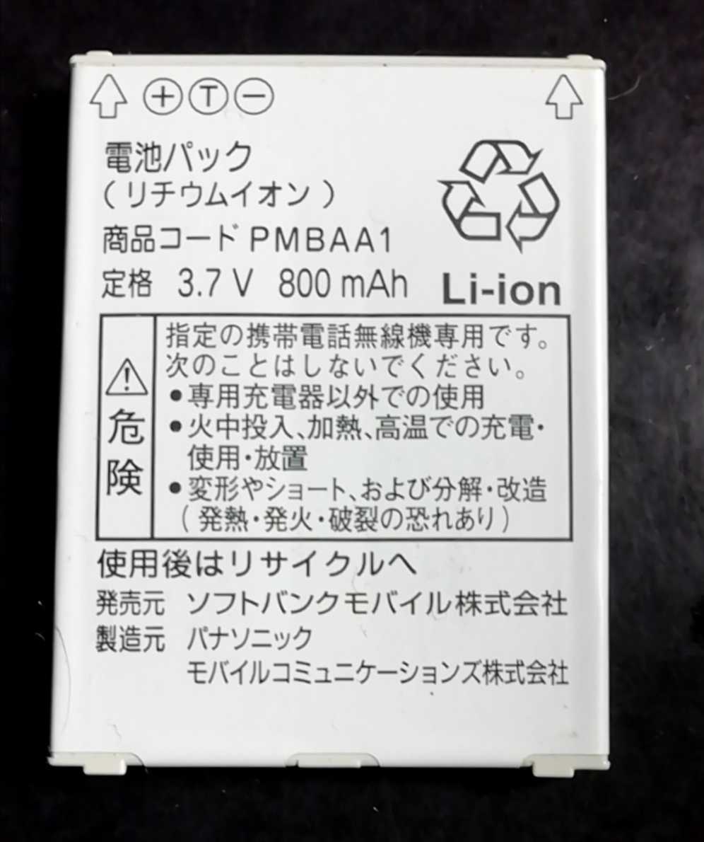 > 【中古】ソフトバンクPMBAA1純正電池パックバッテリー【充電確認済】対応機種(参考)705P/706P