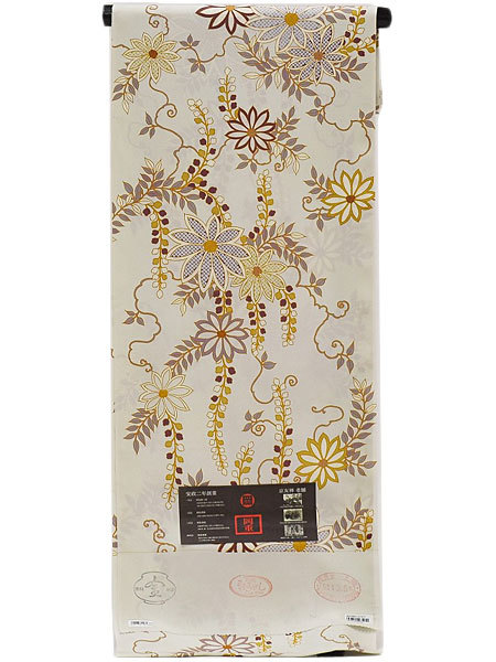 - 長襦袢 正絹 岡重 反物 老舗 京友禅 岡重謹製 壷金印 春江ちりめん地 日本製 正絹 精華縮緬地 未仕立て 13.5m 京友禅長襦袢 7 送料無料