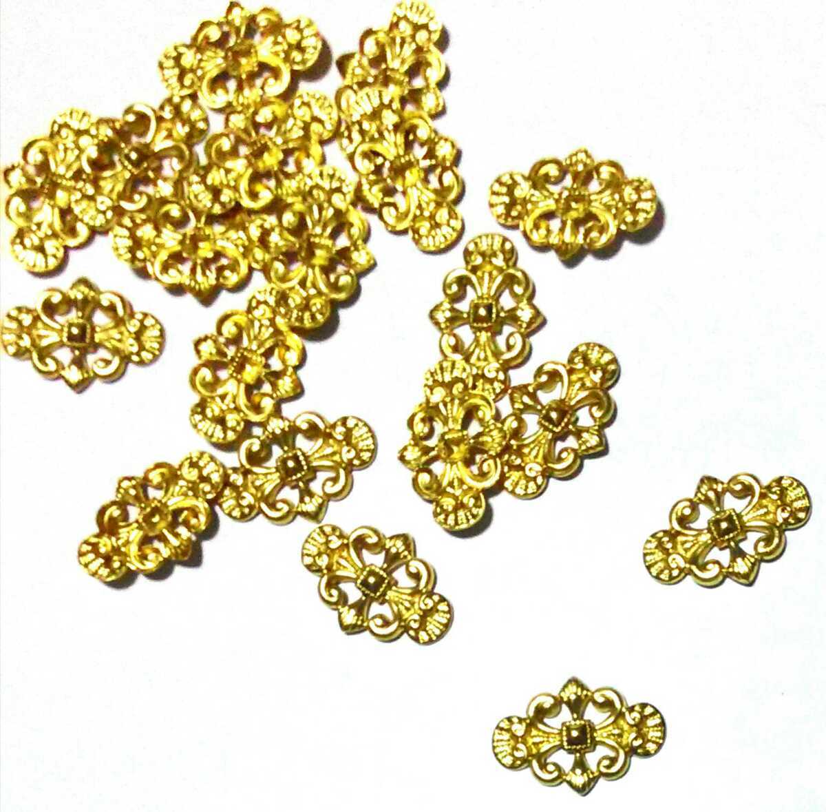 - 6枚入17×11mmゴシック透かしパーツ台座セッティングフィリグリーゴールドトーン