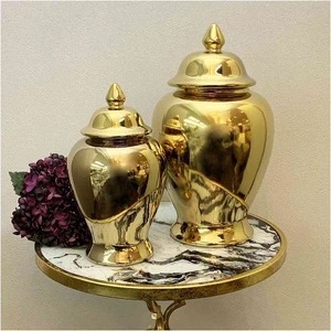 - モダンアンティーク ゴージャスゴールド色の壺 陶器 大サイズ