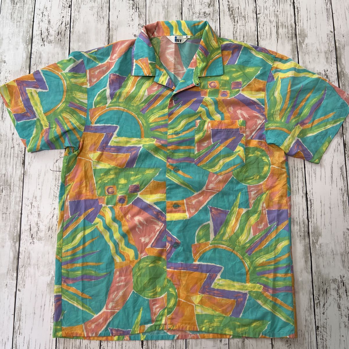 - 60s ist 総柄 柄シャツ レトロ アート マルチカラー ビンテージ 開襟 オープンカラー 半袖シャツ