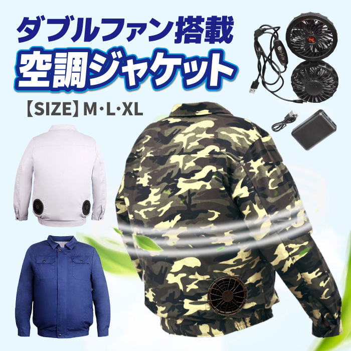 - ダブルファン 空調ジャケット 熱中症 紫外線 日焼け対策 バッテリー 充電式 野外 屋外 作業 農作業
