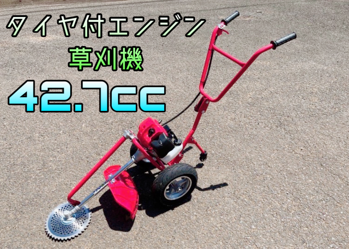 - タイヤ付エンジン草刈機 手押し草刈り機 らくらく作業 最強42.7cc y