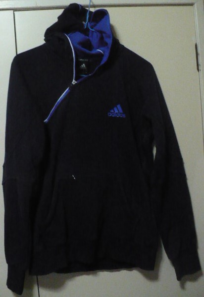 - adidas(アディダス)製たすき掛け?アシンメトリー?ジップフーディープルオーバーパーカー S ネイビー
