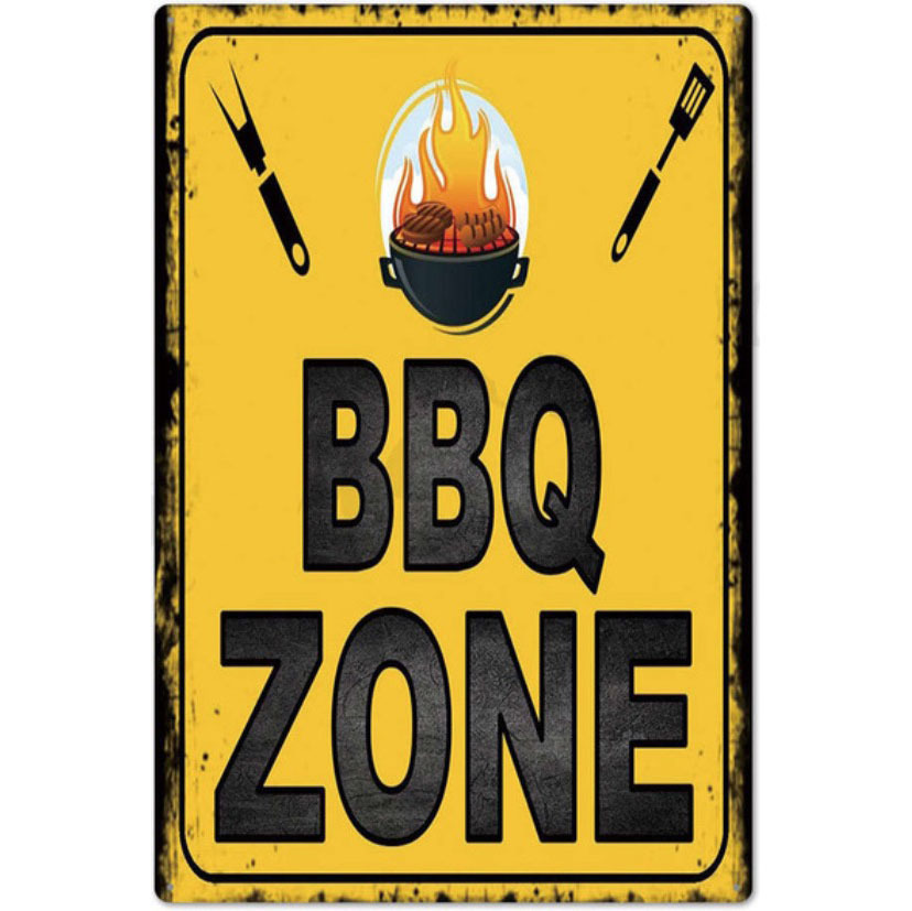 - A1812 メタル サイン 金属 製 ブリキ 看板 プレート 店 アウトドア 車 キャンプ 焚火 焼肉 バーベキュー BBQ ZONE 【2157】