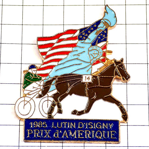 - ピンバッジ・競馬/USA星条旗アメリカ賞ヴァンセンヌ自由の女神1985年優勝◆フランス限定ピンズ◆レアなヴィンテージものピンバッチ