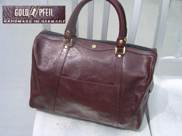 > GOLD PFEIL MADE IN Germany VINTAGE ドイツ 老舗名門 ゴールドファイル 赤ワイン 葡萄色の小ぶり セレブ 金持ちボストン 美品 男女兼用