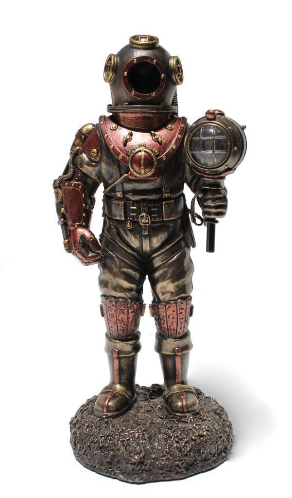 - 西洋彫刻 ライト付き、ダイビングベル スチームパンク風 骸骨(スケルトン)コールドキャストブロンズ製置物(輸入品