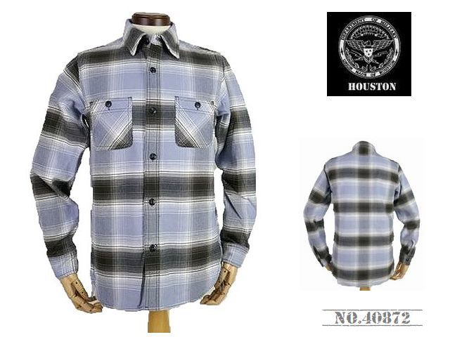 > 【送料無料 30%OFF】HOUSTON ヒューストン ヘビービエラ オンブレチェック WORKシャツ NO.40872 SAX_Mサイズ