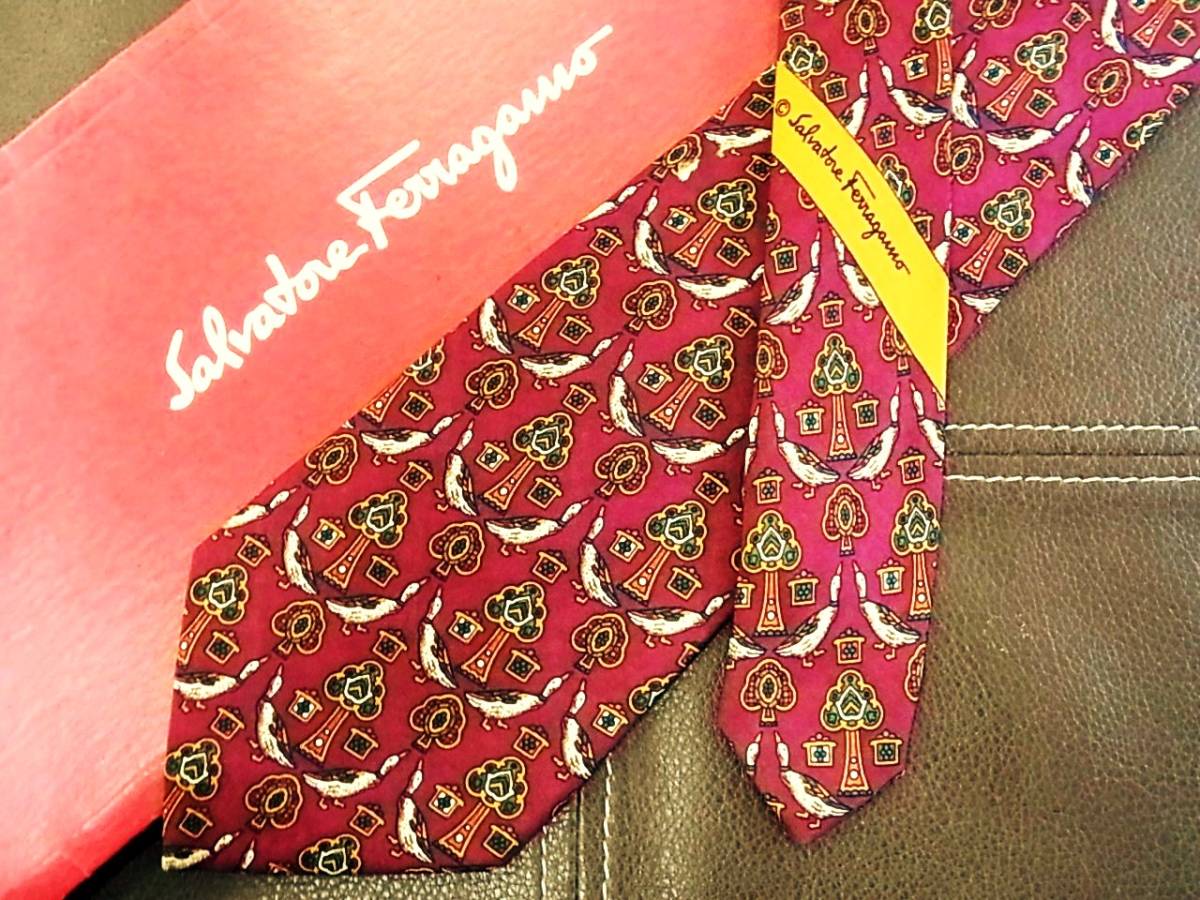 - 【在庫処分セール】5-6245z■フェラガモ【鳥 カモ 鴨】ネクタイ