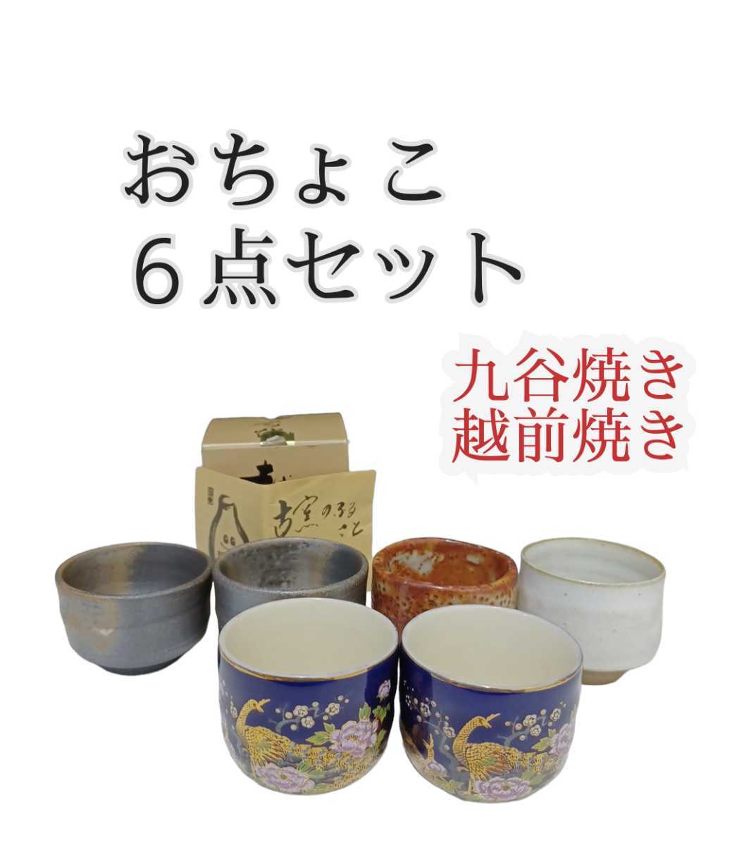 > 岩)※決算セール 酒器 ぐい呑み ぐい呑 お猪口 盃 おちょこ 日本酒 湯呑 九谷焼 越前焼き 孔雀 まとめ 6点 220929(N-1-4)