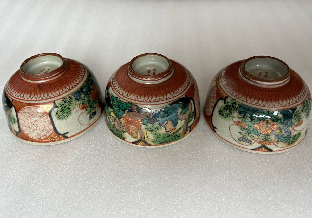 - 九谷焼 湯呑み アンティーク 3個 九谷 ゆのみ 茶器 K237