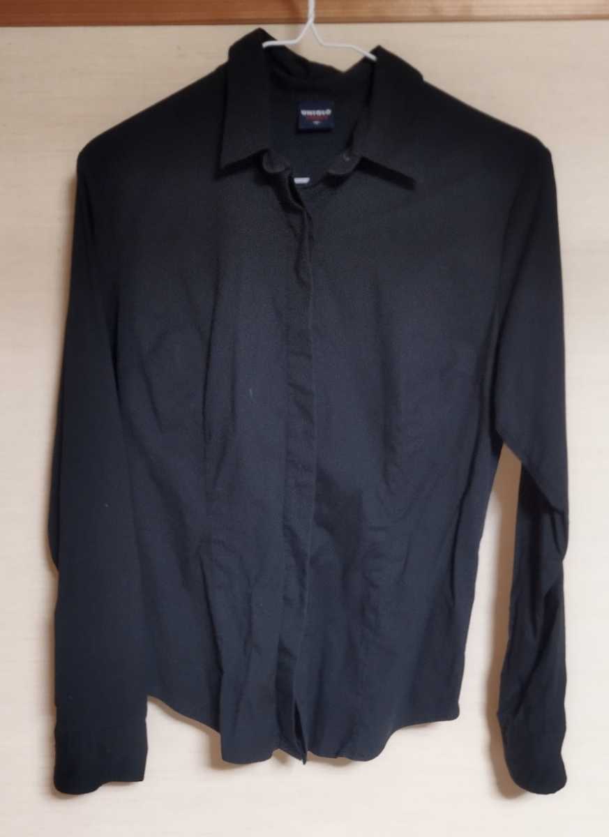 - 黒 ユニクロ 綿 シャツ ストレッチ入りでスタイルアップ ジャストサイズ M
