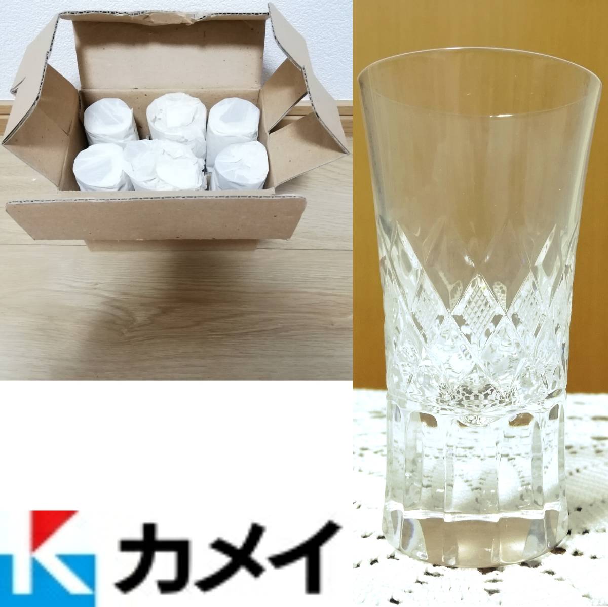 > ヴィンテージ新品カメイPARKA CRYSTALカットグラス6客セットPK-121 6PCSデッド松坂屋クリスタルガラスKAMEIゴブレット タンブラー コップ