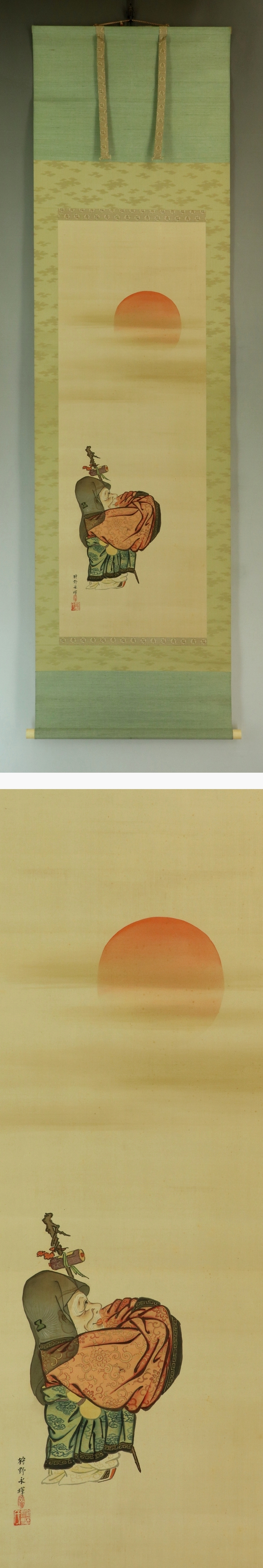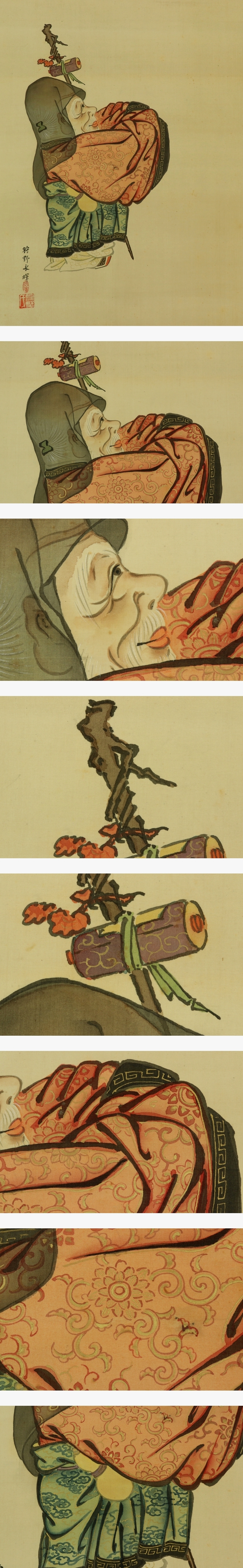 - 【真作】狩野永暉【福禄寿】◆絹本◆掛軸 u06006