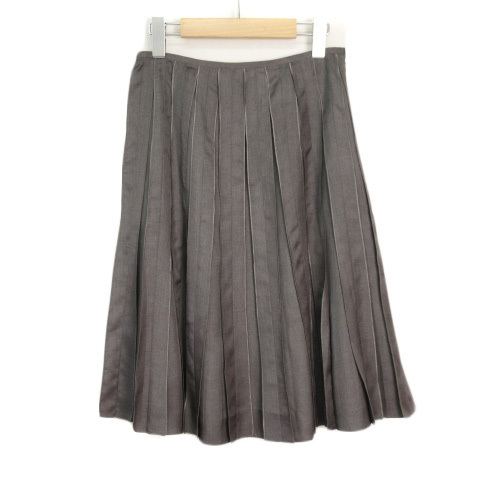 - ランバン LANVIN スカート プリーツ パイピング シャイニー グレー