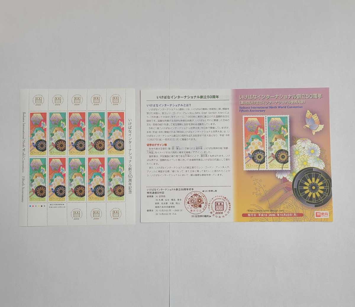 > 「未使用切手+解説書」いけばなインターナショナル創立50周年 80円切手 1シート 平成18年10月23日発売 2006 日本 JAPAN R410