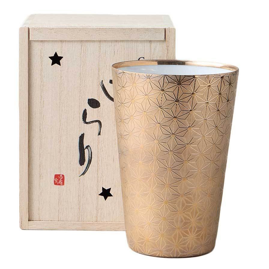 - 美濃焼! ☆きらり・うすはりタンブラー麻の葉(金)☆ V4100-5 新品 木箱焼酎杯 ビアグラス ジョッキ ドリンク カクテル 氷 ギフト