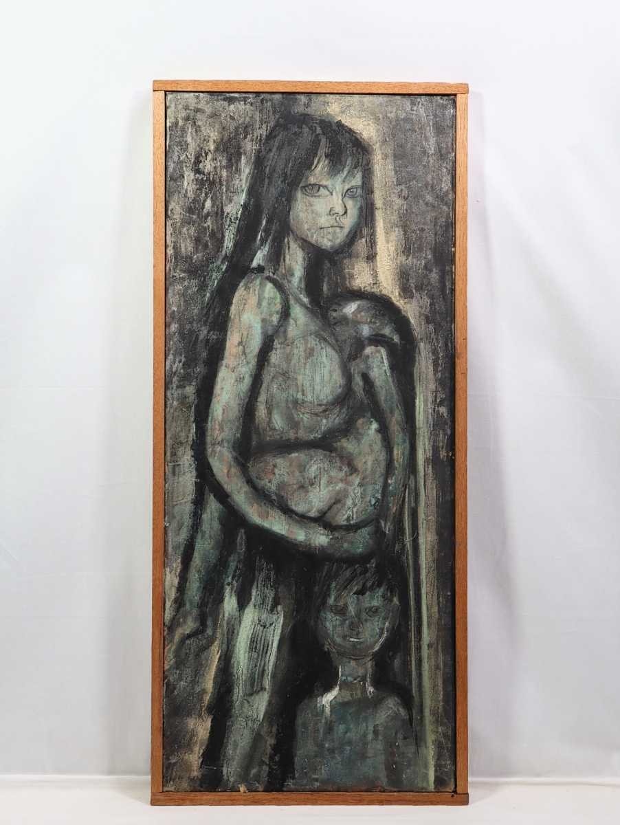 - 真作 平田晴耕 1974年大型作品 日本画「姉に抱れて」画寸 38cm×91cm 石川県出身 創造美術会創立、名誉会員 一番上の姉の視線が印象的 5736