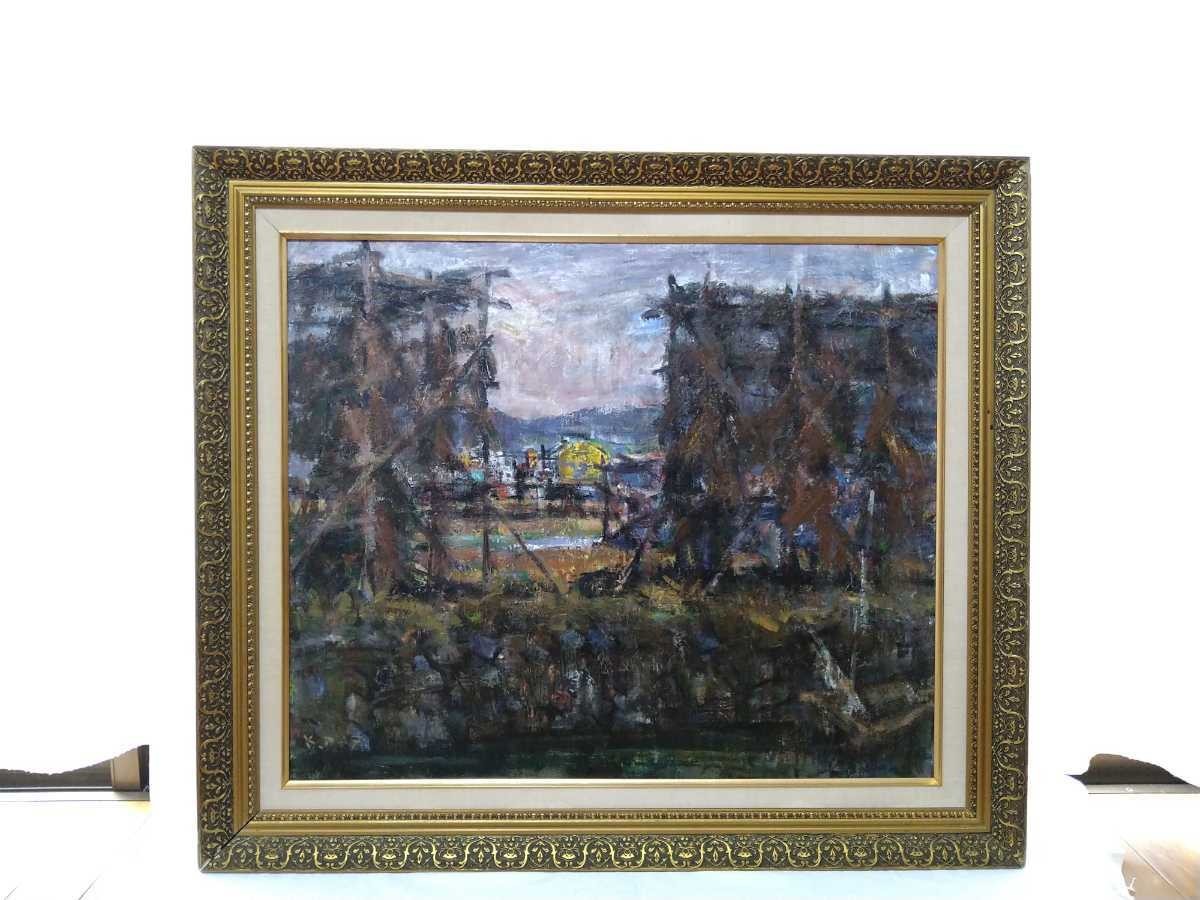 - 真作 黒川昭 1977年油彩「味野 塩田跡」画寸72.5cm×60.5cm F20 岡山県倉敷市児島地域 全国屈指の塩業地として名を馳せた塩業地の風景 4182
