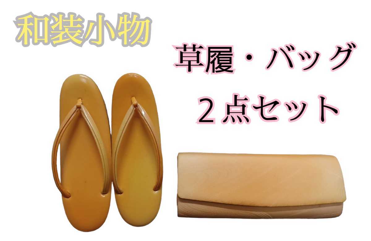 - 岩)2点セット 中古 和装小物 草履 ぞうり 履物 鞄 オレンジ バッグ かばん セット 着物 小物 女性用 和装 お祝い 行事 小物 221018(M-2-4