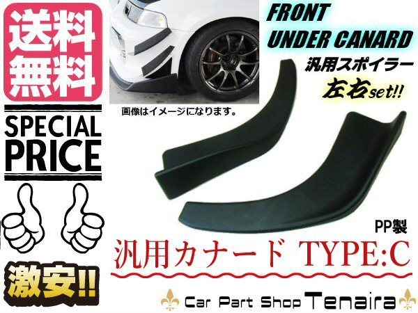 > 汎用 PP製 カナード 左右セット Cタイプ 艶消し 黒 マットブラック アンダー リップ スポイラー ディフューザー エアロ 送料無料/2