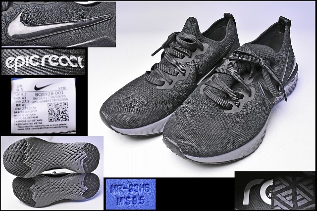 > NIKE ナイキ ★ Epic React Flyknit 2 エピック リアクト フライニット スニーカー ★ 27.5cm 黒 ★ 黒ソール ★ BQ8928-001