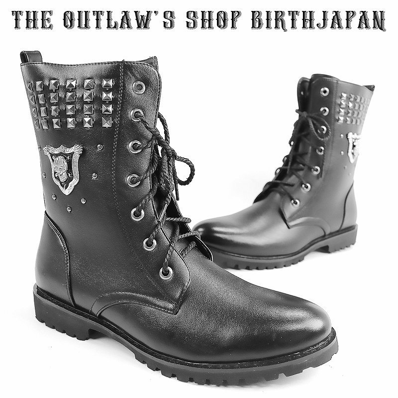 > スタッズ付き ロングブーツ 黒 靴 メンズ シューズ ファッション オラオラ系 悪羅悪羅系 お兄系 メンナク ホスト 派手 秋冬 110