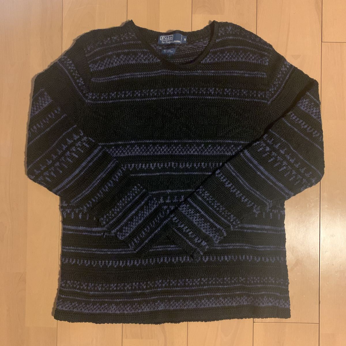 > 90s【Polo Ralph Lauren】リネン ニット 香港製 Mサイズ 少し難あり ポロ ラルフローレン