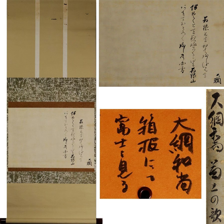 - 《源》【即決・送料無料】前大徳寺 大綱宗彦 筆 茶掛 和歌「箱根にて富士を見る」/箱付