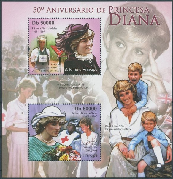 - サントメプリンシペ切手『ダイアナ妃生誕50周年』2枚シート 未使用